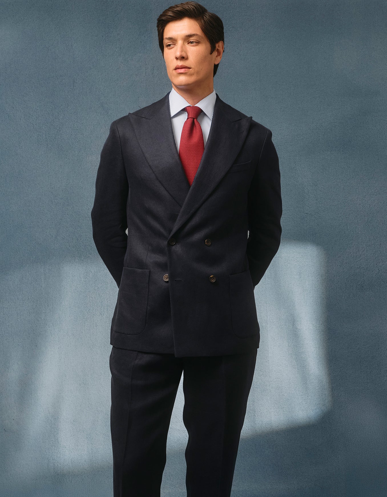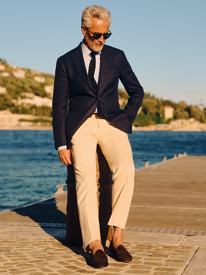 Shop our seasonal collection of linen tailoring.